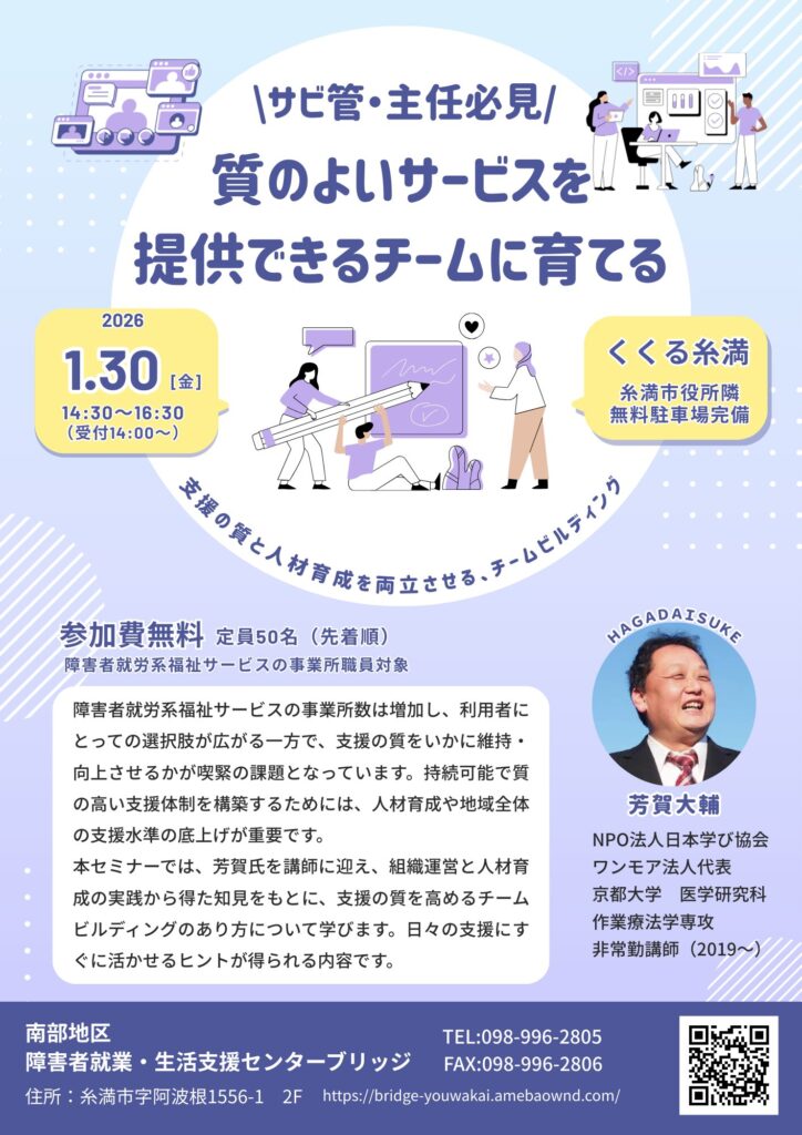 - 就労支援セミナー『質のよいサービスを提供できるチームに育てる』